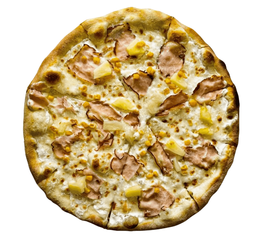 вершковий соус, сир моцарела, шинка, ананас, кукурудза
